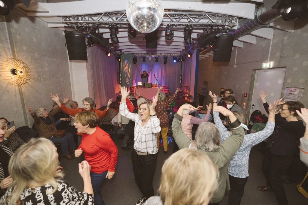 Die Kontakte zur Hamburger Musik- und Kulturszene, die Oll Inklusiv die Türen öffnen z.B. zu Diskotheken und Künstler:innen, sowie den kreativen Kopf für die abwechslungsreichen Ideen bringt Mitra Kassai mit aus ihrer Tätigkeit als Musik- und Kulturmanagerin. Teil der Initiative sind etwa 40 Ehrenamtliche. I.d.R. unterstützen zehn davon bei den Veranstaltungen vor Ort – „mitmachen dürfen Menschen jeden Alters. Die unter 60-Jährigen müssen anpacken, die über 60-Jährigen sind zu Gast“, sagt Kassai. Aber als Personal möchte sie ihr Team keinesfalls bezeichnen: „Wenn es nicht ums Geld geht, ist die Teamdynamik eine ganz andere.“ So hätten sich längst Freundschaften zwischen einigen Ehrenamtlichen und Senior:innen entwickelt.