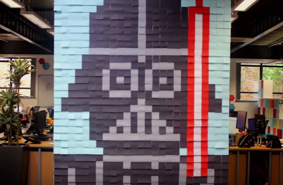 Der Post-It Darth Vader klebt im US-Büro von Viking. (Bild: Youtube)