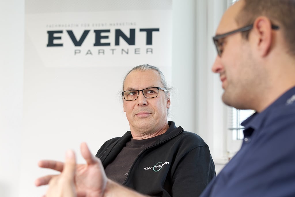 … hat Media Spectrum vor 35 Jahren gegründet und ist nach rockmusikalischen Anfängen seit langer Zeit vorrangig für Corporate-Kunden tätig. „Heute ist manche Messe mehr ein Event mit begleitendem Messebau“, stellt Schmidt-Enzmann fest und weist darauf hin, dass vormals getrennte Gewerke von Beschallung über Beleuchtung und Medientechnik bis hin zu Bühnen- und Messebau kontinuierlich zusammenwachsen.