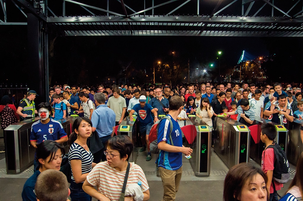 In der Praxis gibt es zu diesem Thema eine Vielzahl von Herausforderungen und Meinungen: „Natürlich“ ist der Veranstalter zuständig, „natürlich“ ist es eine Frage der öffentlichen Sicherheit, der Betriebssicherheit der Haltestelle etc. Und dabei geht es bei Weitem nicht nur um Abgrenzung („dafür bin ich nicht zuständig“), sondern genauso häufig um die Frage, was z.B. der Veranstalter im öffentlichen Raum eigentlich unternehmen/aufstellen/organisieren darf. Im besten Falle arbeiten alle Beteiligten so zusammen, dass hier gute Lösungen gefunden werden: Abläufe am Bahnhof und auf der Veranstaltungsfläche werden koordiniert und aufeinander abgestimmt, genauso wie die Maßnahmen der Lenkung und Leitung sowie – und das darf natürlich nie vergessen werden – auch die Abläufe in einem Schadenfall, z.B. einem Notfall in einer Einlasssituation, in der sich alle Wartenden im öffentlichen Bereich aufhalten.