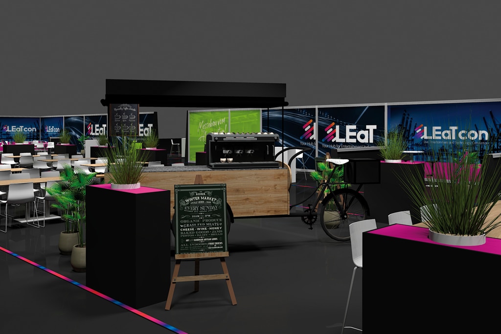Auch hinsichtlich des Caterings wurde seitens der Messemacher an eine nachhaltige Gestaltung gedacht: Feinkost Käfer setzt auf Geschirr aus Porzellan und Glas, auf Pappe und Plastik wird bewusst verzichtet und Müll so auf das Nötigste reduziert. Das Catering wird umlagenfinanziert in die Ausstellerpakete und Eintrittsgelder mit einberechnet, so dass Speisen und Getränke auf der LEaT con für alle Gäste wie Aussteller frei ausgegeben werden können. Der Service rückt damit in den Mittelpunkt und Kontakte werden nebenbei reduziert, für alle, die aufgrund von Corona lieber weiterhin vorsichtig agieren.