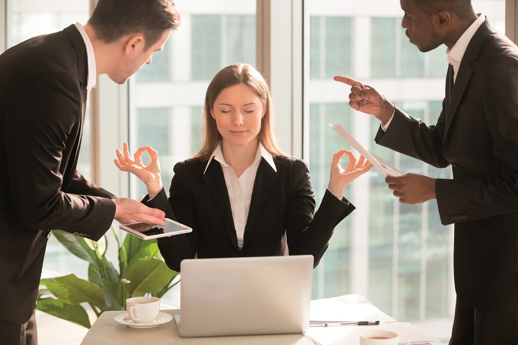 Entspannung-Resilienz-Stress-Arbeit-Büro-Kollegen