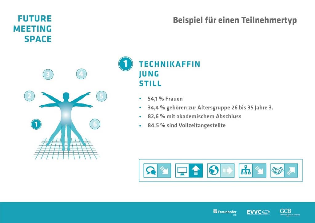 So kann ein Teilnehmertyp, dem laut Untersuchung ¼ der Befragten zugeordnet werden können, beispielsweise als technikaffin, jung und eher introvertiert bezeichnet werden. Die Person steht am Anfang ihres Berufslebens, wird die Veranstaltungen der Zukunft prägen und sollte von den Veranstaltern als Wiederbucher gewonnen werden.