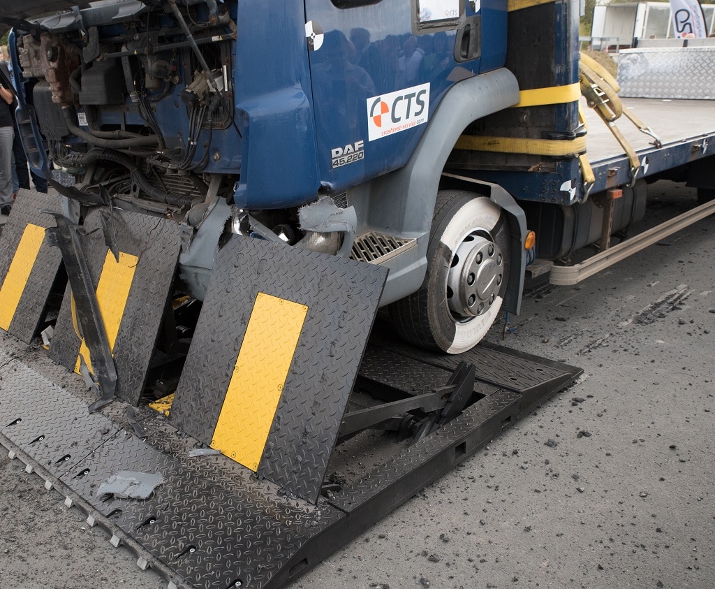 Crashversuch LKW 7,49t gegen mobile Fahrzeugsperre (20.09.2018, Testanlage CTSMünster) (Bild: Harald Scherer)