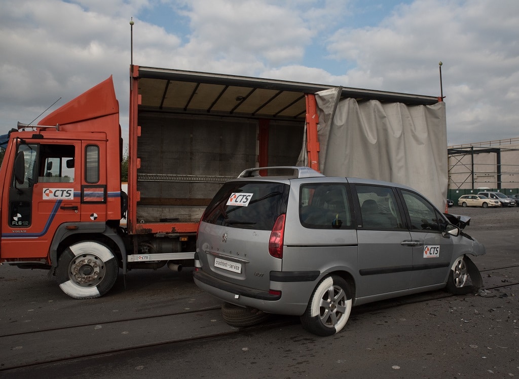 Crashversuch PKW gegen LKW 7,49t als Hindernis LKW wird um 90° verdreht (20.09.2018, Testanlage CTSMünster)