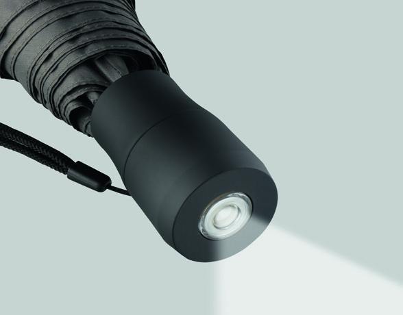 Oversize-Taschenschirm FARE®-Shine mit der im Griff integrierten LED Projektionslampe (Bild: Fare)