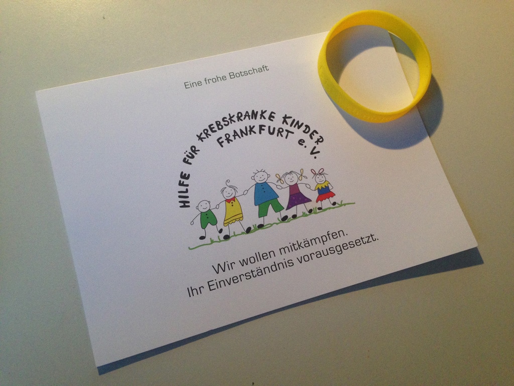 Die Frankfurter Eventagentur verteilt Motivationsbändchen fürs Handgelenk von www.dumusstkaempfen.de und supportet damit einen Verein für krebskranke Kinder in Frankfurt.
