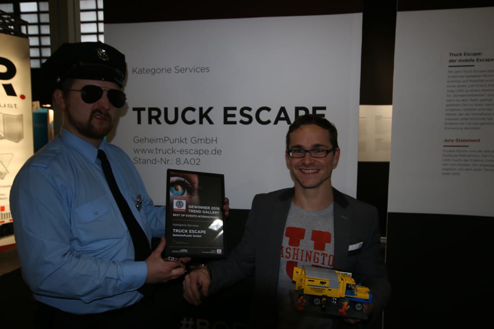 Die Trend Gallery zur BOE 2016 verfolgt den Anspruch, Trends und Neuheiten zu präsentieren. Einer der Gewinner ist die GeheimPunkt GmbH mit Truck Escape, dem mobilen Escape Room.