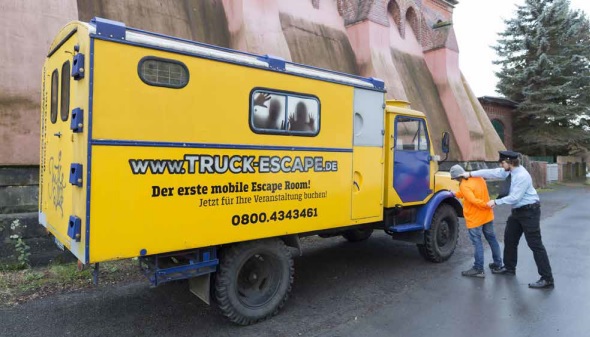 Mit dem Truck Escape setzt die GeheimPunkt GmbH bei beliebten Room-Escape-Spielen erstmals auf Mobilität und bringt so den Nervenkitzel direkt zum Event. Dafür wurde ein Hanomag-LKW zu einem Hochsicherheitstransporter für „Schwerverbrecher“ umgebaut. Und nur wenn es dem Team gelingt, Rätsel in der vorgegebenen Zeit zu lösen, kann es dem Gefängnis entgehen. Geleitet wird das Spiel von einem Wärter, der die Verhaftung und Beförderung der Insassen unter Kontrolle hat. Ergänzt wird das Erlebnis mit Fahndungsfotos, die eine passende Erinnerung darstellen.