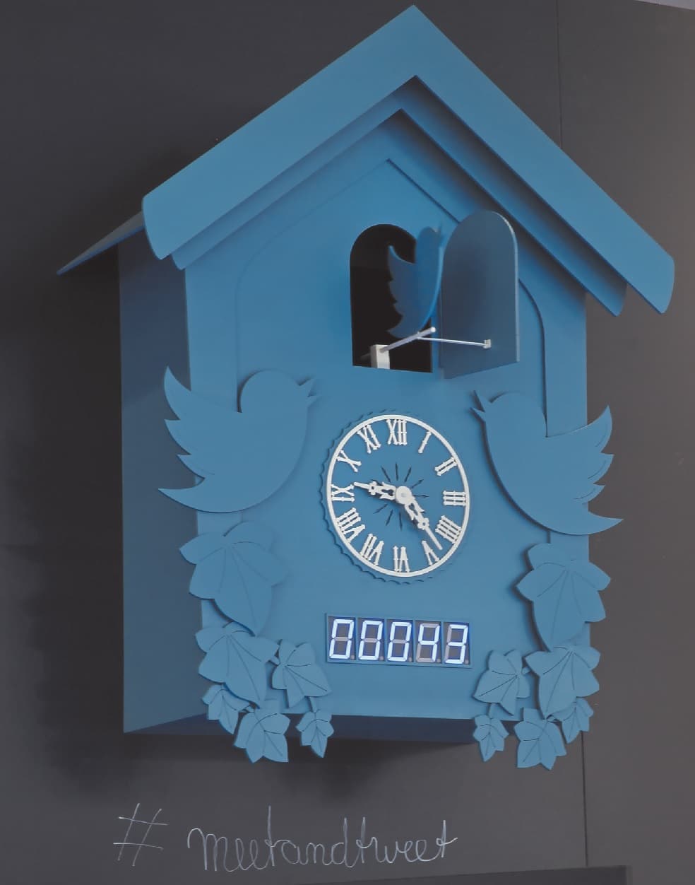 Jeder Eingang ließ den Twitter-Vogel aus dem aufklappenden Türchen fliegen; die Zahl der eingehenden Tweets wurde mithilfe einer vierstelligen Anzeige visualisiert. „Twitter sucht für Auftritte in jedem Land etwas Spezifisches – wir bei concept X haben die welterste digitale Kuckucksuhr samt der erforderlichen Vernetzung entwickelt!“ stellte Axel Hoffmann, Senior Consultant bei concept X und als Projektleiter für den dmexco-Auftritt verantwortlich, schmunzelnd mit Blick auf den viel beachteten Eyecatcher fest.