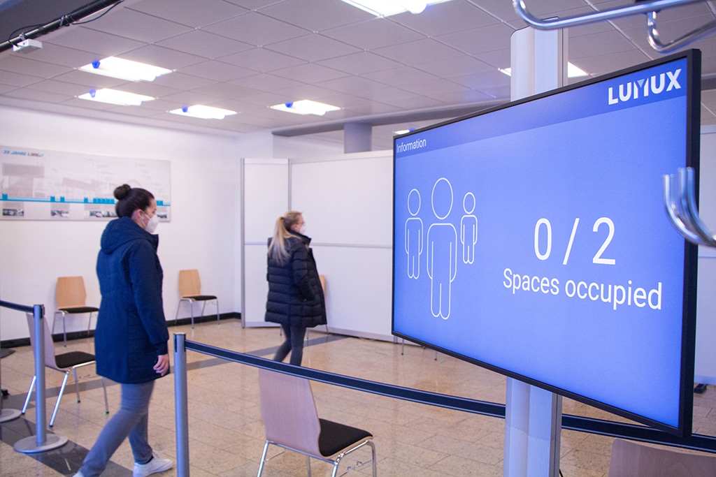 All diese Aspekte hat die Lang AG, Distributor für AV-Technik, in ihrem neuen Angebot Lumux Guardian vereint. Erstmals zum Einsatz kam das System bei den hybrid durchgeführten AV Innovation Days Anfang Februar; knapp 200 Teilnehmer:innen waren live vor Ort. Dabei scannten sich die Besucher:innen während des Events zunächst an der Akkreditierung (Raum A) ein und betraten den Wartebereich (Raum B). Um die zulässige Personenanzahl pro m² nicht zu überschreiten, wurde der Füllstand des Raumes mithilfe einer Kamera erfasst. In einer Testkabine wurden dann die Schnelltest durchgeführt und die Testdaten mit dem persönlichen Barcode und der Event-ID verknüpft. In einem weiteren Wartebereich (Raum C) wurden dann nach der Auswertungszeit von ca. 15 Minuten die jeweiligen Event-IDs auf Displays angezeigt sowie die Gäste via E-Mail bzw. Lumux Guardian App über das Testergebnis informiert. Teilnehmende mit negativen Ergebnissen durften nun das Eventgelände betreten. Als Einlasskontrolle diente ein weiterer Scan. Besucher:innen mit einem positiven Ergebnis mussten sich am Info-Point melden und das Gelände verlassen. Mit einer solchen Teststrecke können laut der Lang AG in der Stunde 30 Personen getestet werden. Je nach Veranstaltungsgröße könnten beliebig viele Teststrecken eingesetzt werden.
