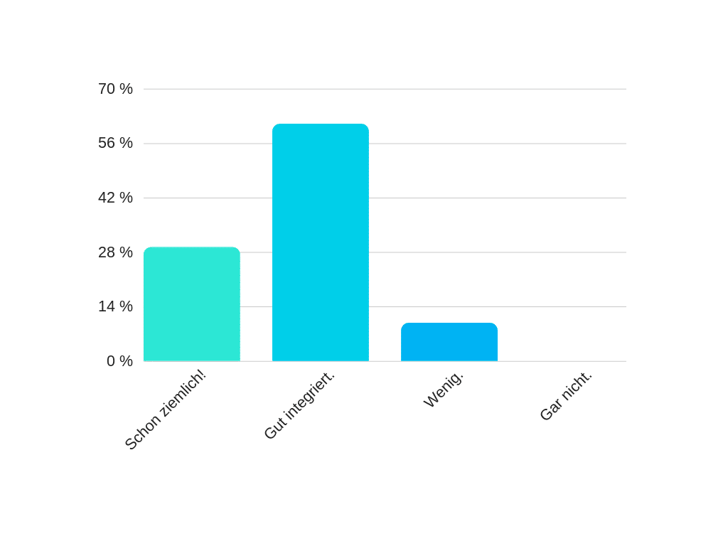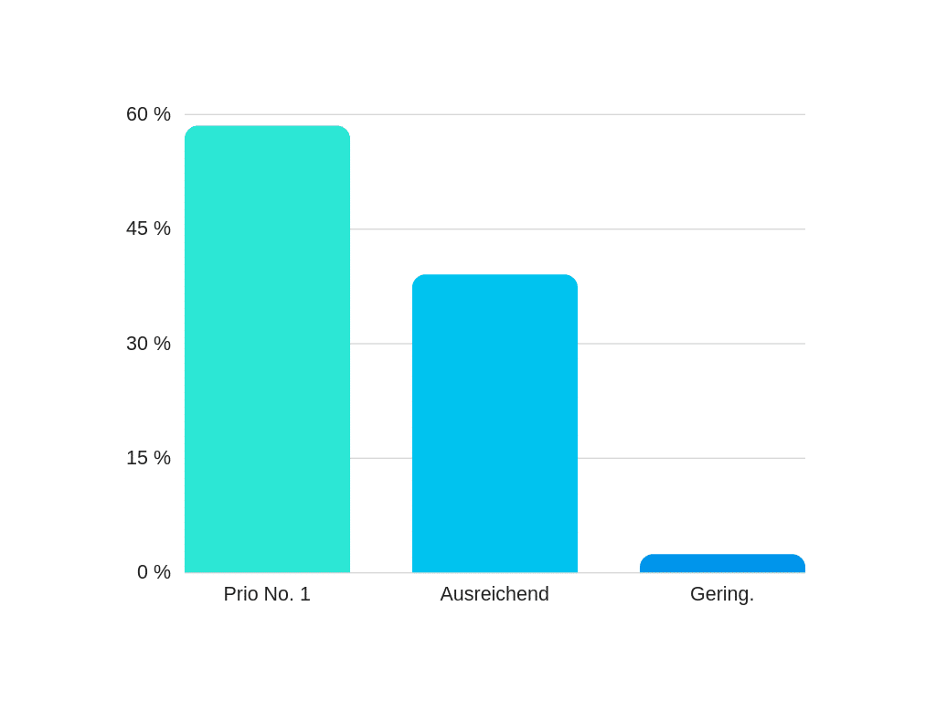 Gut zu wissen! Bei 58,5 % unserer Umfrageteilnehmer hat die Sicherheit im Unternehmen oberste Priorität. Bei weiteren 39 % wird sie noch in ausreichendem Maße berücksichtigt. Lediglich 2,4 % geben zu, dass an die Sicherheit nicht allzu viele Gedanken verschwendet werden.