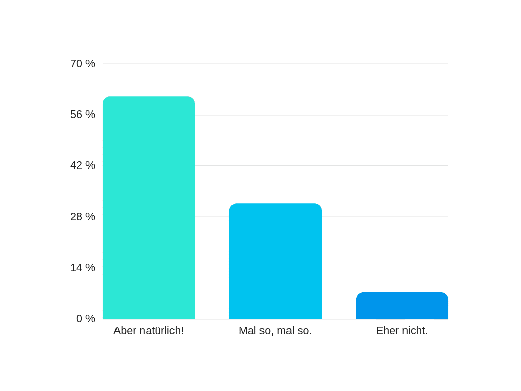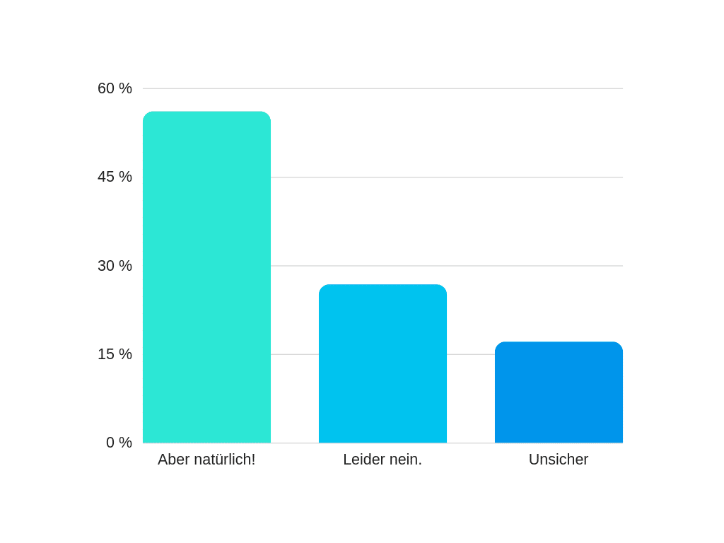 Auch hier kann man aufatmen, wenn auch noch ordentlich Luft nach oben ist: In 56,1 % der Unternehmen gibt es bereits Richtlinien, um die Sicherheit auf einer Veranstaltung zu gewährleisten. Dagegen gibt es noch ganze 26,8 % unter den Unternehmen unserer Umfrageteilnehmer, die keine Richtlinien vorweisen können. 17,1 % waren sich ob dieser Frage unsicher (, haben sich nach der Beantwortung dieser Frage aber sicherlich erkundigt J ).
