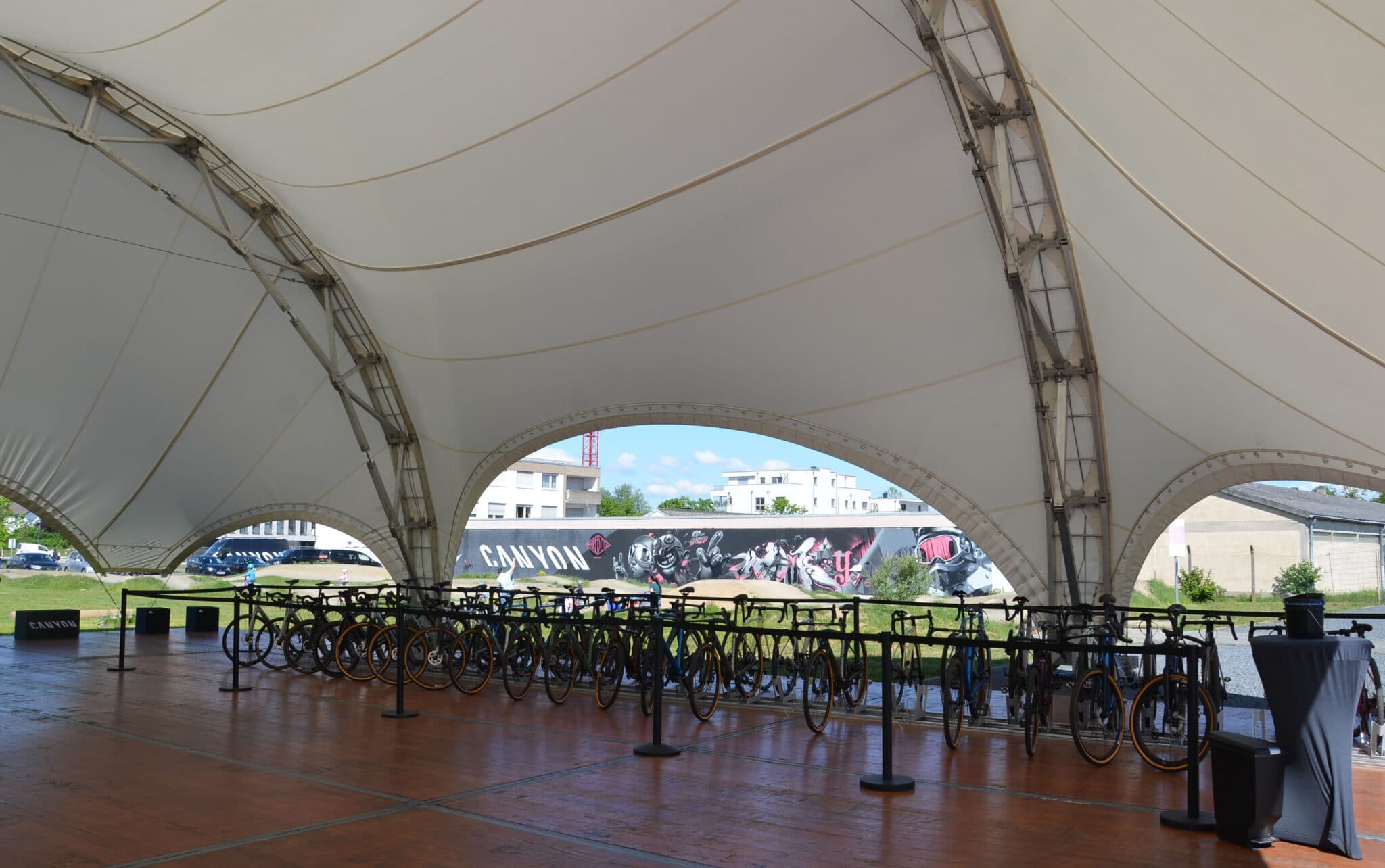 Anfang 2021 dann die nächste Herausforderung: der Aufbau eines 50 x 24 Meter großen exklusiven Spann-Zeltaufbaus, um die Bikes, die von Kundinnen und Kunden vor Ort begutachtet und auf dem benachbarten Gravel-Track ausprobiert werden können, einerseits outdoor, aber doch überdacht präsentieren zu können. „Dieser aufmerksamkeitsstarke Spannbau ist wirklich von Weitem sichtbar und macht uns allen viel Freude“, sagt Sascha Wipf, Facility und Fleet Manager bei Canyon. Die halboffene Architekturlandschaft sei absolut dazu geeignet, den Eventcharakter, den die Kunden von Canyon erwarten, widerzuspiegeln. Jedenfalls: Die Fanbase sei begeistert.