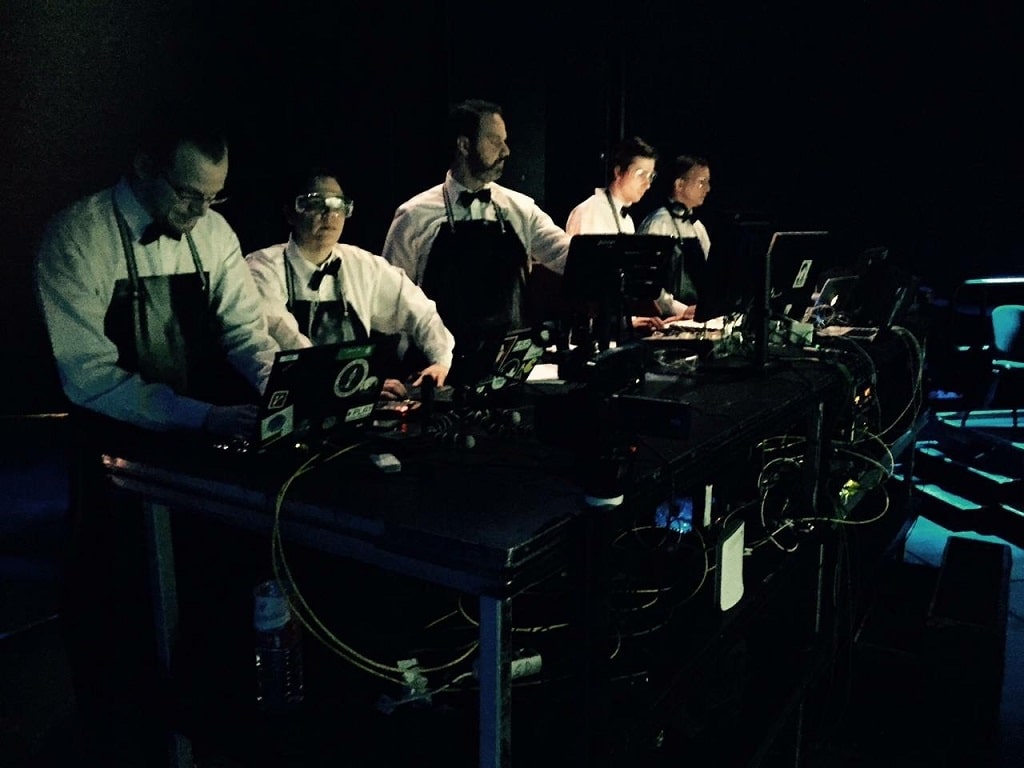 Die Technik-Crew der Inszenierung „4.48 Psychose“ in der Regie von Kay Voges; die Technik wurde nicht versteckt, sondern war während der ganzen Inszenierung für das Publikum sichtbar. (Bild: Akademie für Theater und Digitalität)