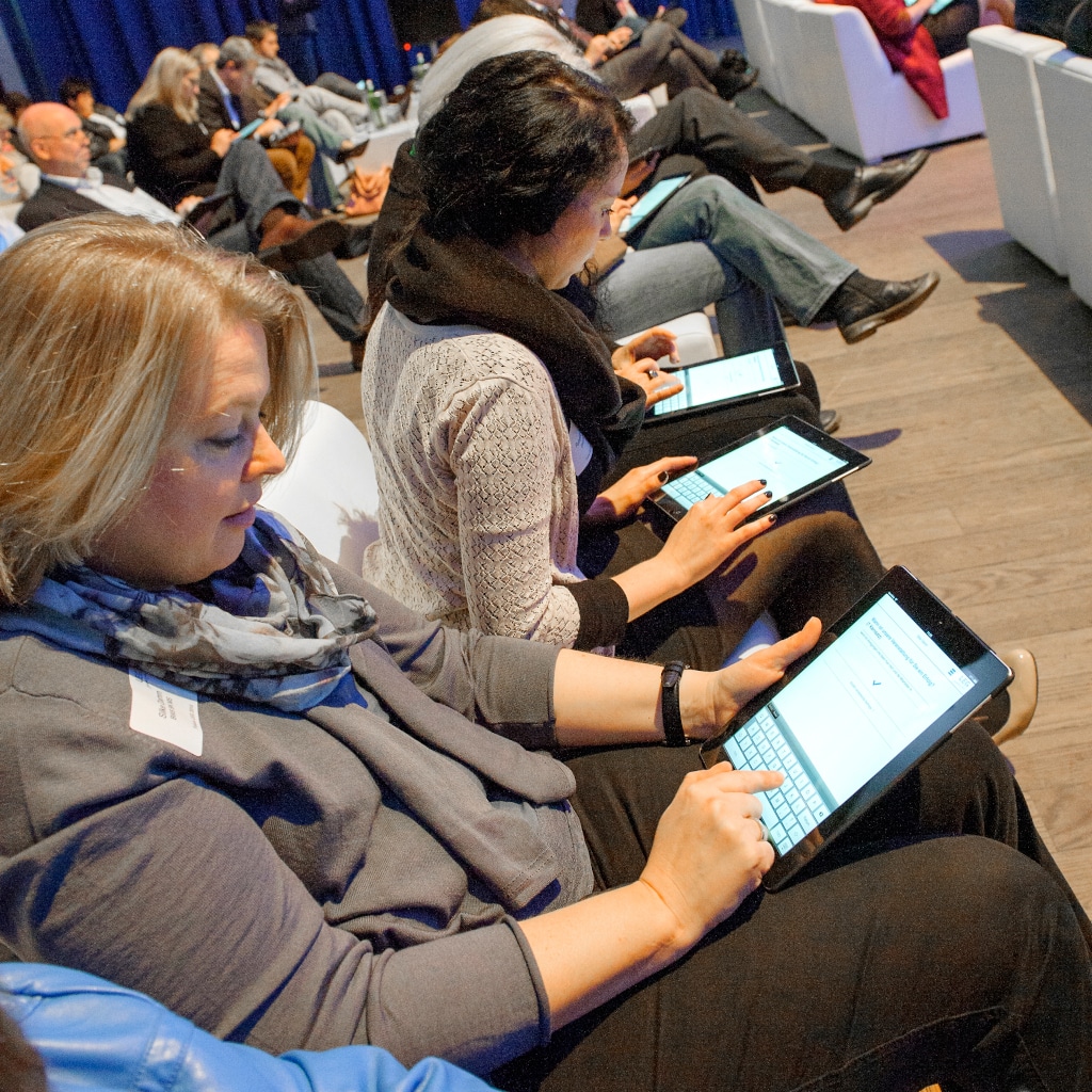 Diese neuen Möglichkeiten bedeuten neue Unübersichtlichkeit für das Eventmanagement. Funktionsumfänge einzelner Lösungen fallen weit auseinander. Ebenso die Preise. Mashups, in denen ich die Interaktionstools der einen App mit dem Content einer anderen App und dem Einlassprozess einer dritten Anwendung kombiniere, sind anspruchsvoll. Standardware scheitert daran, speziellen Kundenwünschen nicht zu genügen. Vor allem seitdem das Bewusstsein für Datenschutz und Datensicherheit geschärft ist. Die Entscheidung für die jeweils richtige Lösung fällt zwischen den Ansprüchen des Eventkonzepts, den Compliance-Anforderungen des Kunden, den Gegebenheiten der Location sowie der Kosten- und Amortisationslogik des Events. Dabei spielt besonders die Digitalisierung von Moderation eine immer wichtigere Rolle. Sie kommt zum Einsatz, wenn der Ertrag des Events auf dem inhaltlichen Beitrag der Teilnehmer beruht.