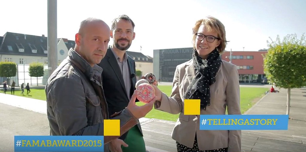 In einem neuen Youtube-Video erklären Jean-Louis Vidière Ésèpe, Prof. Tobias Wallisser, Dr. Petra Kiedaisch (v.l.), was den FAMAB Award 2015 und Raumwelten verbindet. (Bild: Youtube/Famab Award 2015)