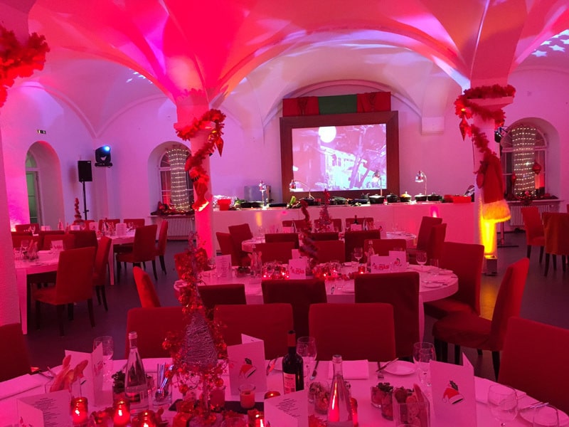 So stand der Film „Schöne Bescherung“ Pate für das Catering, wie im Film wurde u. a. Truthahn serviert, der ganze Raum wurde wie ein überdimensioniertes amerikanisches Wohnzimmer gestaltet, üppig und prächtig. Für den Loungebereich wurde das Thema „Polarexpress“ gewählt, der gesamte Raum wie eine Eislandschaft dekoriert, im Mittelpunkt eine Eisbar mit dem Logo der Firma, und als besonderes Gimmick brachte der Polarexpress die Cocktails auf Schienen zu den Gästen. Weitere Filmthemen wurden umgesetzt und machten die Weihnachtsfeier zu einem einzigartigen Erlebnis.