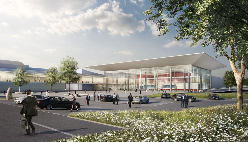 Die Neugestaltung umfasst den Bau einer rund 4.500 Quadratmeter großen Eingangshalle aus Glas vor Halle 4. Eine neue Besucherpassage bindet die Messe- und Eventhallen an, um zukünftig die Besucherströme besser verteilen zu können.