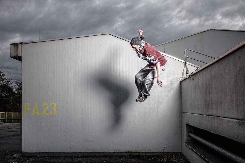 Sebastian Gies wirbelt gern mal durch die Luft. Als ambitionierter Parkour-Sportler überwindet er spielend glatte Wände und hohe Mauern – mitten in der Stadt oder auf der Show-Bühne. Vor zehn Jahren fing Sebastian als Teenager mit Parkour an, jetzt ist er Mitte Zwanzig und hauptberuflich Konzeptioner bei Federfrei, einem freien Kreativbüro in Köln. Auf seinen Sport möchte Sebastian auch nach dem Berufseinstieg nicht verzichten. Denn Parkour ist nicht nur ein hocheffizientes Ganzkörpertraining, sondern hält auch mental fit. Das hilft im kreativen Agenturalltag. Außerdem sammelt Sebastian als Trainer, Choreograf und Performer in der erfolgreichen Bochumer Crossover-Show „Urbanatix“ nützliche Live-Erfahrung. So viel Professionalität erfordert eine Menge Zeit und Energie, als Feierabend-Hobby funktioniert das nicht.