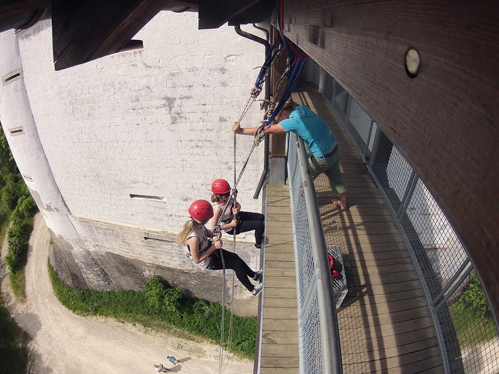 Beim Bogenschießen steht darum beispielsweise besonders die Zielfindung im Mittelpunkt – sowohl beim Training als auch im echten Leben. Auch das Abseilen von Burgtürmen und Brücken hilft Teilnehmern, ihre eigenen Grenzen auszuloten und das Vertrauen zu sich selbst und zum Team weiter zu stärken.