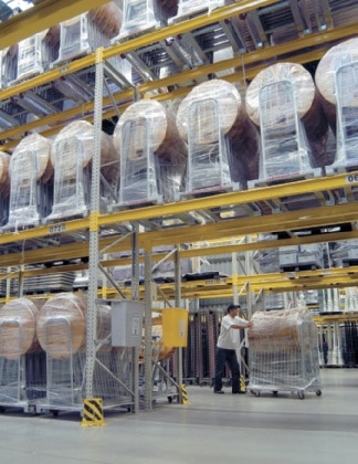Das Party Rent-eigene Transportsystem ist optimal auf die Hochregallager abgestimmt.