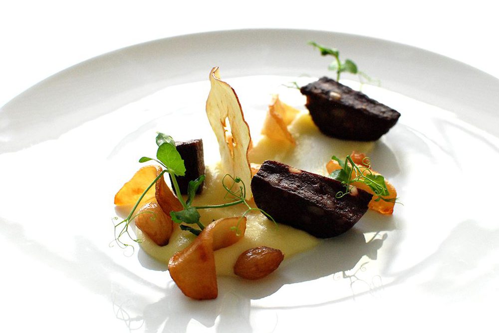 Mit dem traditionellen deutschen Essen verbinden wir Gerichte überwiegend mit Fleisch und Kartoffeln, zu denen der klassische Sauerbraten, Schnitzel und Bratwürste gehören. Catalogna greift diese Traditionen auf und interpretiert sie auf eine neue moderne Weise. So entstehen neue Gerichte, schnörkellos und mit leichten Soßen. Ausschließ- lich frische Zutaten und Gewürze, angerichtet mit viel Gemüse, lassen Klassiker leichter werden. Ingwer und Chili geben den herkömmlichen deutschen Gerichten eine moderne unkonventionelle Note wie der Sauerbraten von Kalbsbäckchen auf Rotkraut.