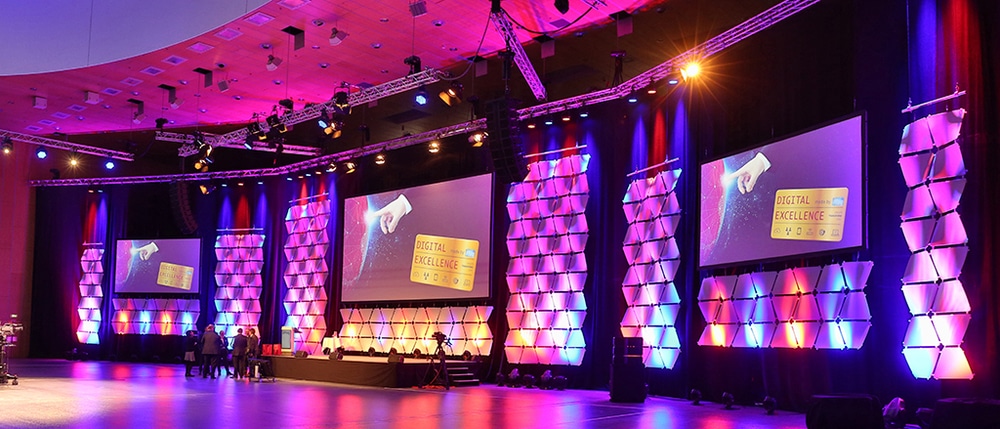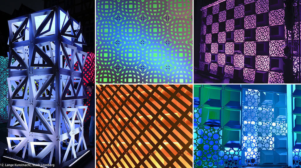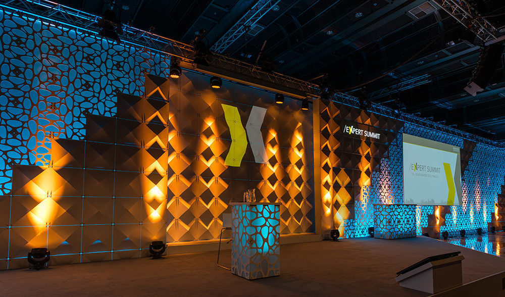 Mit einer Größe von 57 cm x 57 cm erscheinen die 22 verschiedenen Panels auf den ersten Blick eher unscheinbar. Mit Licht in Szene gesetzt, gewinnen die Panels an Tiefe und entfalten ihren dreidimensionalen Raum-Effekt. Ob als SuperWall oder SuperColumn freistehend oder als Backdrop geflogen an Traversen: Die Panels sind flexibel im Raum einsetzbar und wirken sowohl in den größten Hallen als auch im kleinen Konferenzraum oder auf dem Messestand.