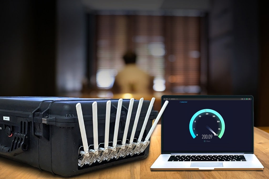 Das „Multi-LTE Case“ ist eine robuste, mobile Lösung, die sich durch Ausfallsicherheit auszeichnet. Es bündelt die Internetsignale von allen verfügbaren Anbietern und einer ggf. verfügbaren Hausleitung zu einem ausfallsicheren Ausgangssignal. Dies ist besonders wichtig für Anwendungen wie Livestreaming-Events, bei denen eine ausfallsichere Verbindung das Fundament darstellt.