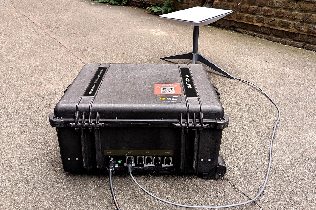 Das „SAT-Case“ mit Starlink ist eine unabhängige Internetverbindung für Events. Es bietet eine direkte Satellitenverbindung und funktioniert europaweit völlig unabhängig von der digitalen Infrastruktur vor Ort. Eventnet hat das Starlink-System für den Eventbedarf angepasst und die Eigenheiten von Starlink, wie z.B. kurze Unterbrechungen beim Satellitenwechsel, erfolgreich gelöst.