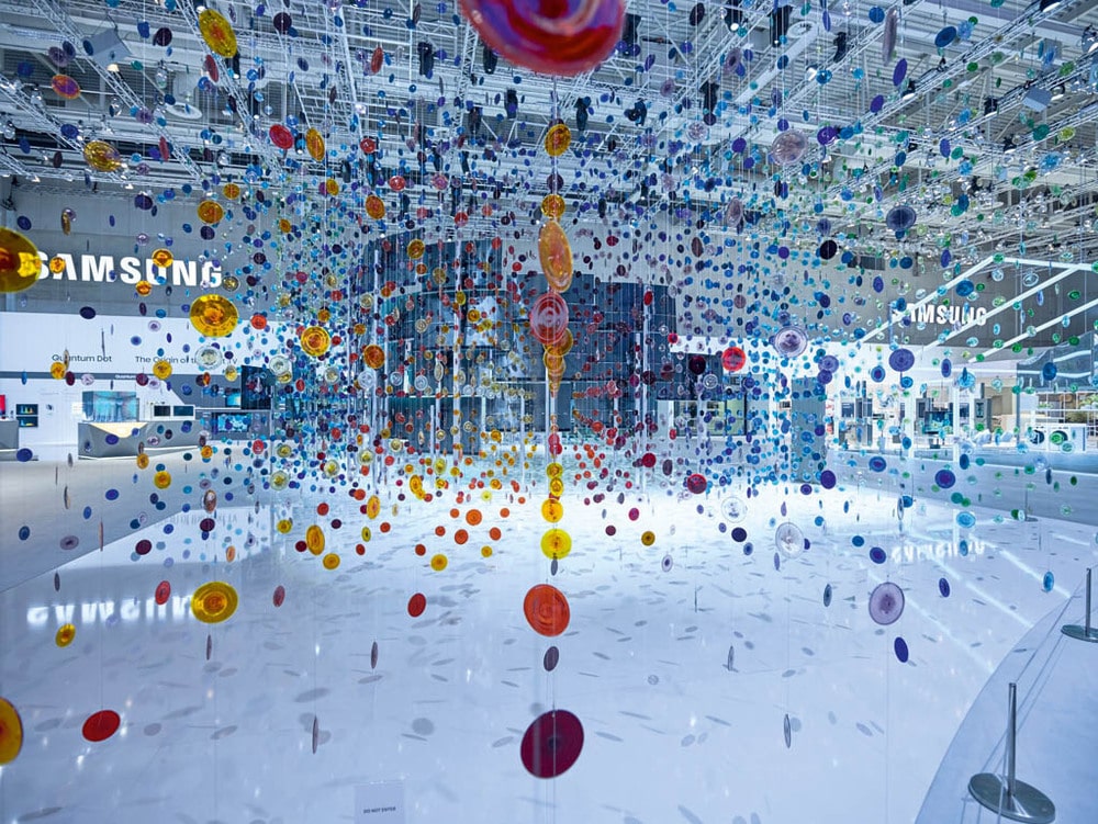 9.204 frei hängende bunte Glasbutzen visualisieren die neue Samsung-Technologie Quantum Dot auf der IFA 2016. (Bild: Robert Hörnig/ad modum)