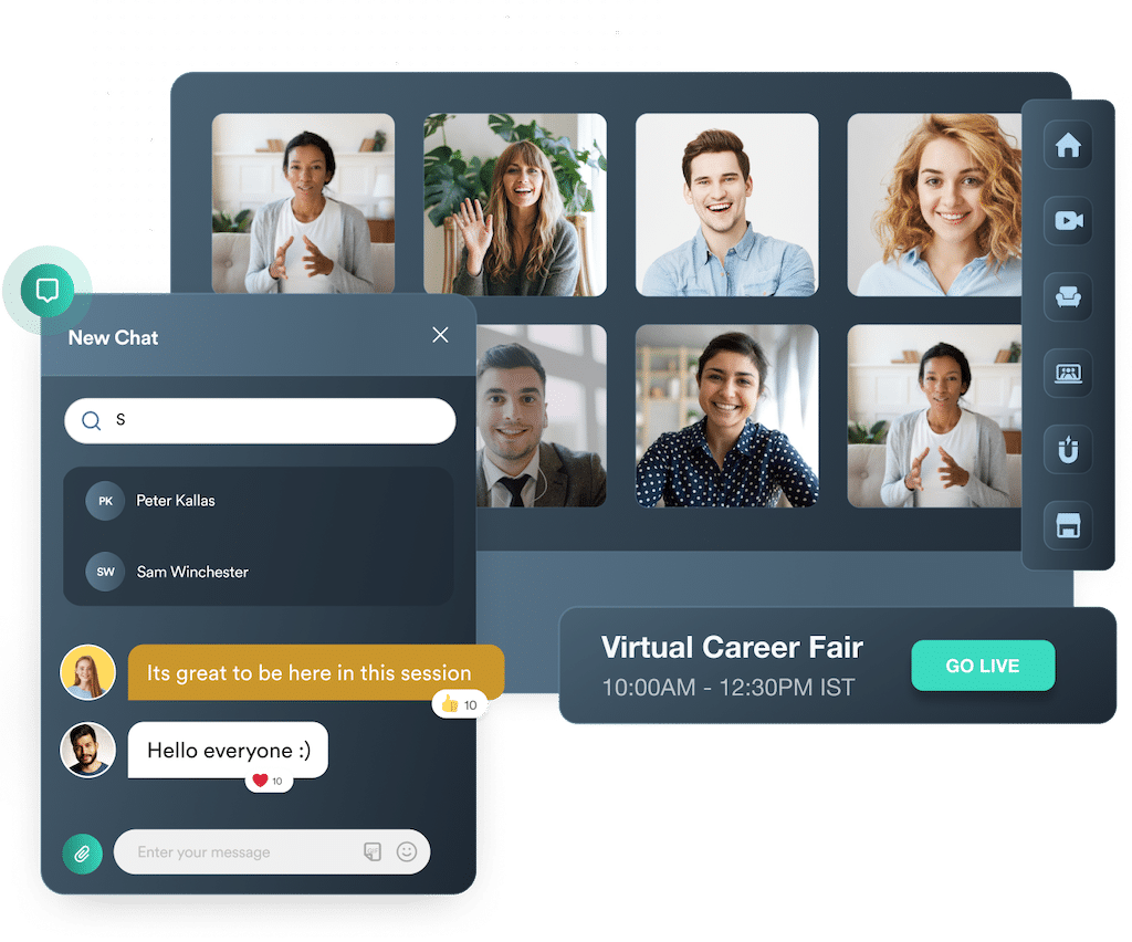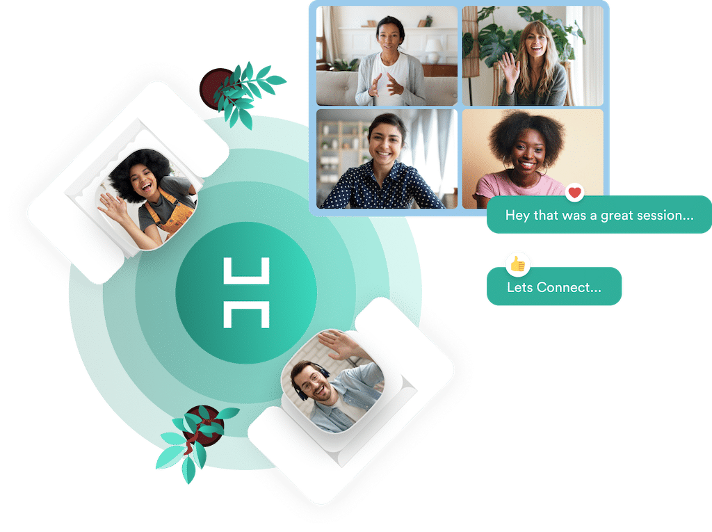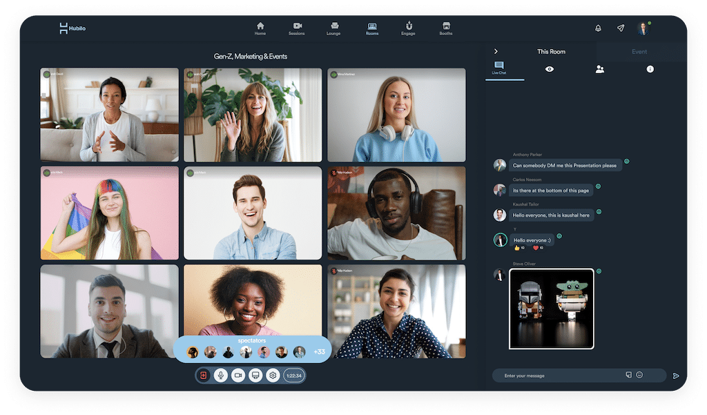 Die Plattform von Hubilo bietet zahlreiche Optionen fürs Networking. Intelligentes Matchmaking bringt die passenden Gesprächspartner:innen in Text- und Video-Chats zusammen. Terminiert, spontan, 1:1 oder in kleinen Gruppen. Wer will, macht die Teilnehmendenliste des Events oder der Sessions für alle sicht- und filterbar.