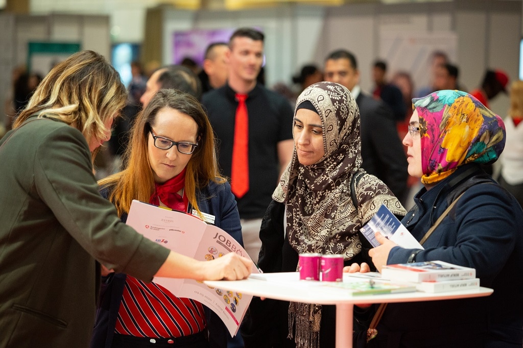 Jobbörse für Geflüchtete und ausländische Arbeitssuchende (Bild: Estrel Berlin / Christian Mang)