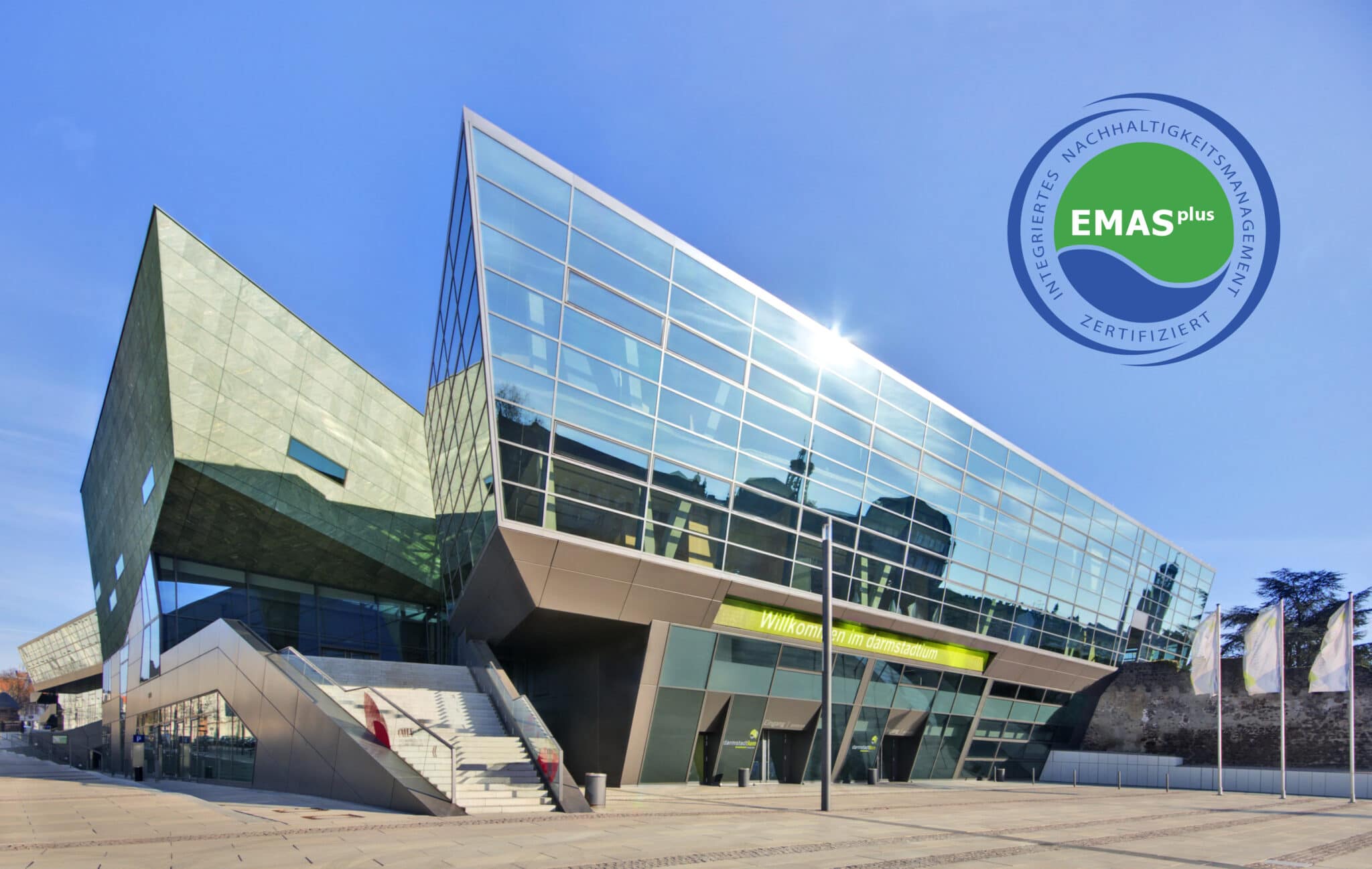 Verantwortungsvoll und zukunftsorientiert Wirtschaften – das ist das Ziel: Das darmstadtium ist das erste Kongresszentrum mit EMASplus-Zertifizierung in Europa. EMASplus ist ein Nachhaltigkeitsmanagementsystem, das auf dem weltweit anspruchsvollsten System für Umweltmanagement, dem Eco-Management and Audit Scheme – kurz EMAS – basiert. Als umfassendes Nachhaltigkeitskonzept erweitert es die ökologische Perspektive um sozial-ethische und ökonomische Themenfelder.