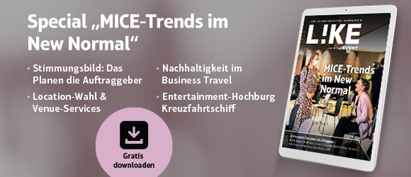 In unserer Sonderpublikation „L!KE – MICE-Trends im New Normal“ zeigen wir von EVENT PARTNER Ihnen kompakt zusammengefasst, wie das Angebotsportfolio der MICE-Anbieter konzipiert ist, was für Möglichkeiten sich Ihnen bieten sowie was in den Auftragsbüchern bereits geplant und angefragt wurde.