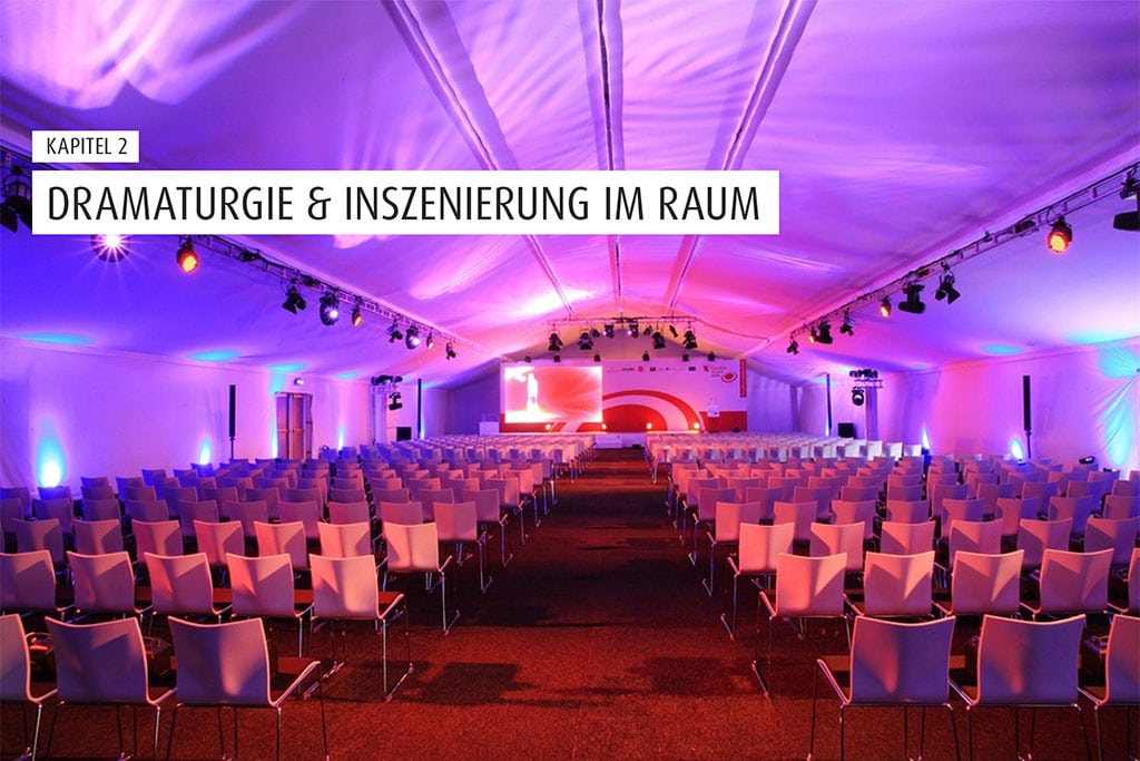 Auch das Ausstattungskonzept übt eine nicht zu unterschätzende Wirkung auf die Besucher aus: Beispielsweise können mit unterschiedlichen Sitzordnungen verschiedene Botschaften unterstützt werden, ein Gefühl der Zusammengehörigkeit erzeugt oder eine höhere Dynamik der Eventgäste hervorgerufen werden.