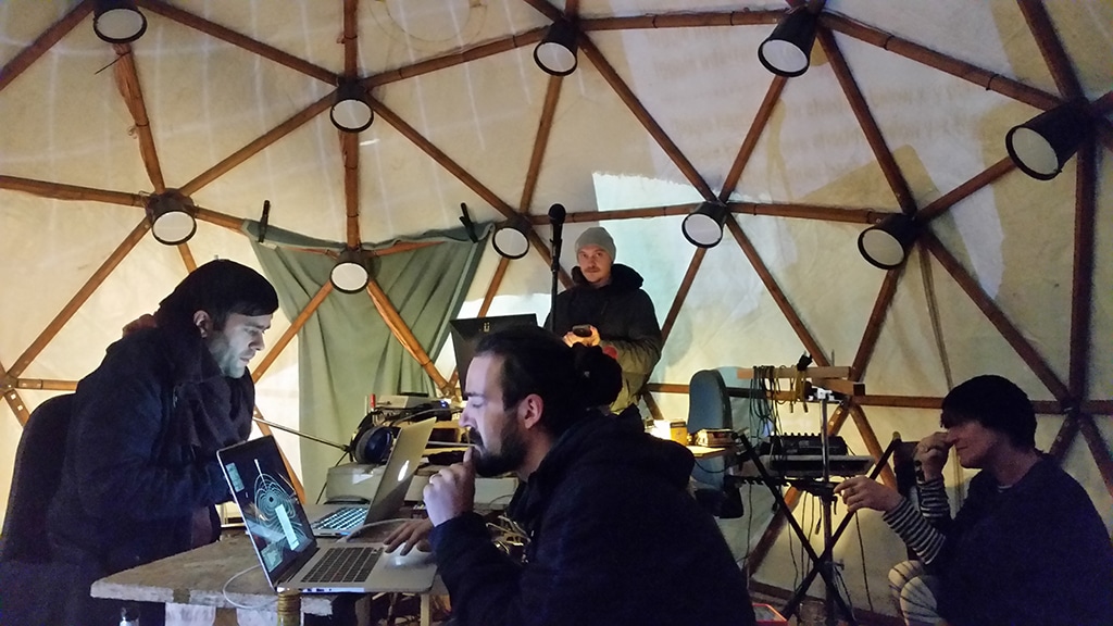 Darüber hinaus können Besucher im Klangdome auf dem Freigelände eine einzigartige Sound-Installation erleben. Ausgestattet mit einem DIY-3D-Sound System mit 31 Lautsprechern und vibrierendem Boden wird diese geodätische Kuppel zu einem klangintensiven Veranstaltungsort. Im vom KlangdomeKollektiv verwendeten Ambisonics 3D Soundsystem werden 6×6-Kanal 100-Watt-Class-D-Amplifier eingesetzt, um die wasserdichten 8 Ohm Lautsprecher zu speisen. Diese sind in selbstgebauten, zum Ambiente passenden Gehäusen untergebracht.