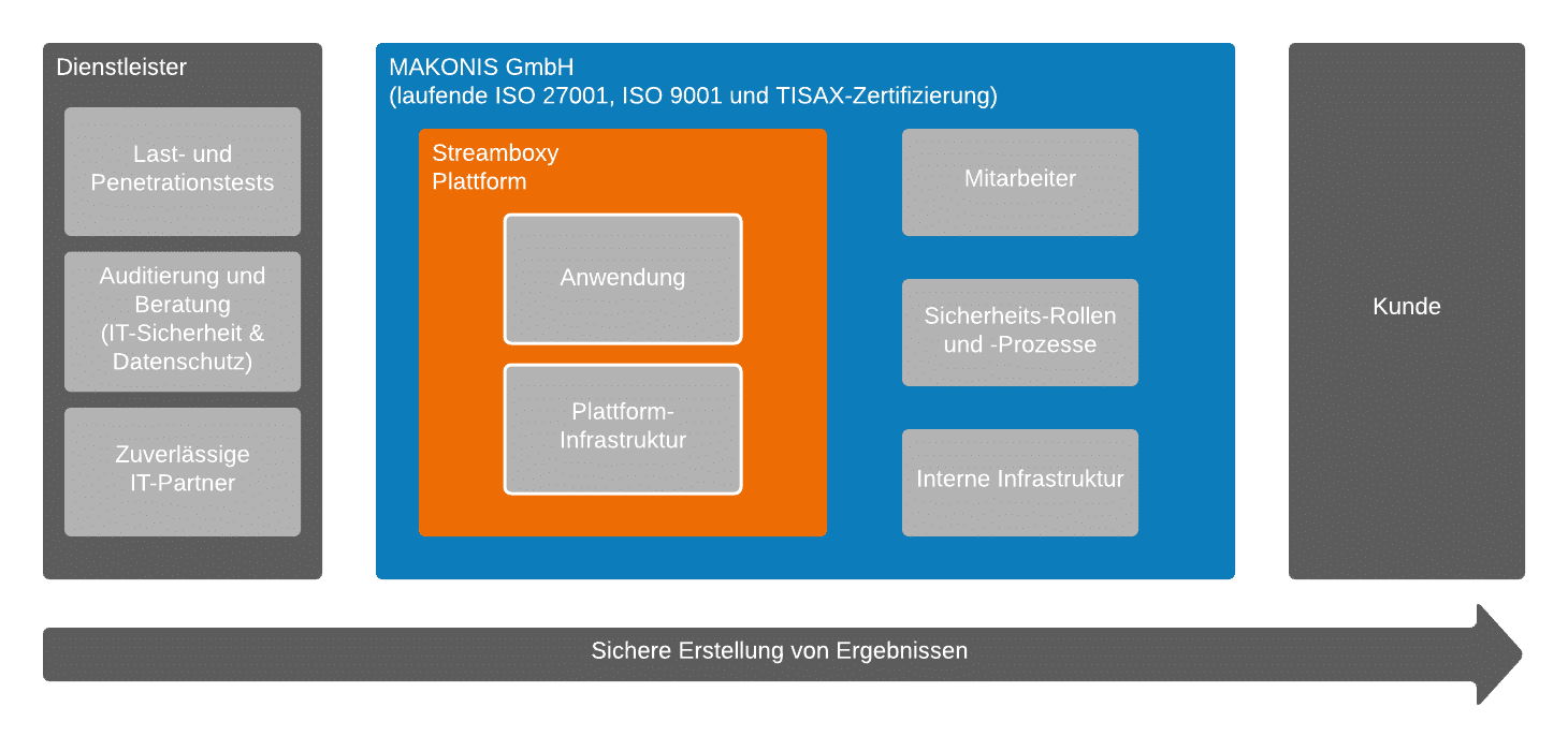 Damit die Event-Vorbereitungen nicht ins Stocken geraten, bedarf es eines Anbieters für Online-Events, der sich mit IT-Freigabeprozessen auskennt. Ein Anbieter, der die Kommunikation mit der IT übernimmt und sich an etablierte Standards hält: an die IT-Security-Norm ISO27001 oder TISAX und ein Qualitätsmanagement nach ISO9001. Ein solcher Online-Event-Anbieter ist Streamboxy. Entwickelt von der erfahrenen Münchener IT-Beratung MAKONIS, bündelt die Plattform wertvolle Enterprise-IT-Erfahrung und ganzheitliche persönliche Betreuung auf Basis bewährter Microsoft-Technologie – samt nativer Integration von Microsoft Teams als neues, einzigartiges Feature.