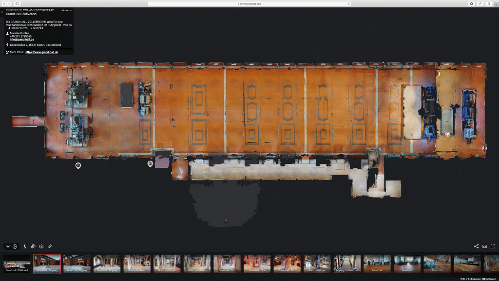 Zum umfassenden Service von LOCATIONFREUNDE gehört dabei nicht nur die Erstellung und das Hosting des virtuellen 3D-Rundgangs. Zum Paket gehört ebenfalls der kostenfreie Eintrag auf dem Location-Portal des Fullservice-Dienstleisters für Location-Management, die aktive Vermarktung der Venue sowie die die Vermittlung aller eingehenden Anfragen ohne Folgekosten oder Provision. So wird der digitale 3D-Rundgang von LOCATIONFREUNDE zu einem 360°-Vermarktungstool.