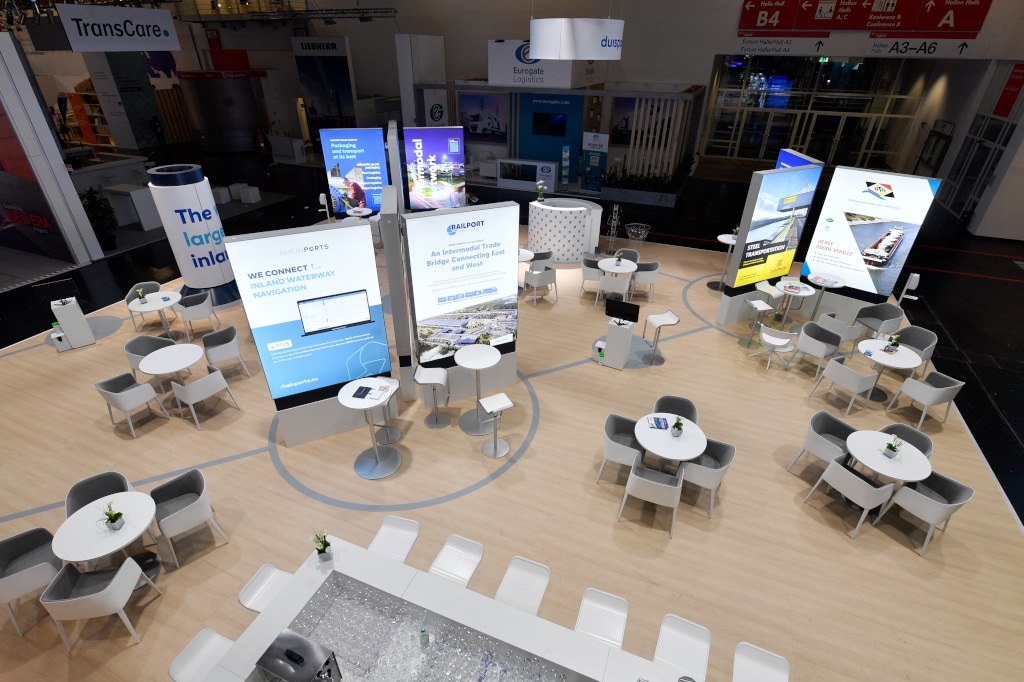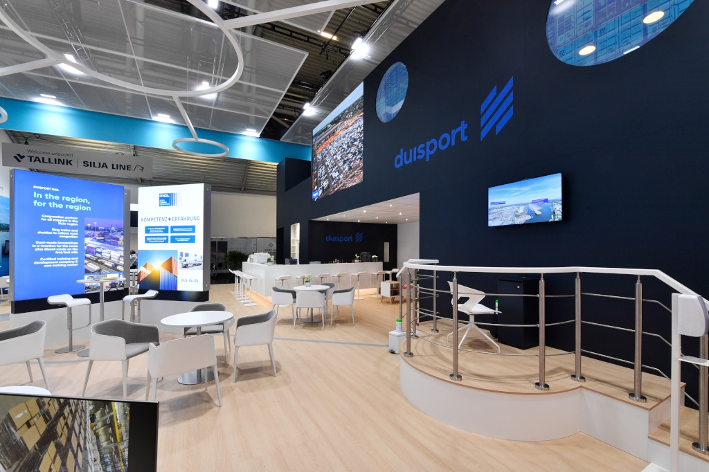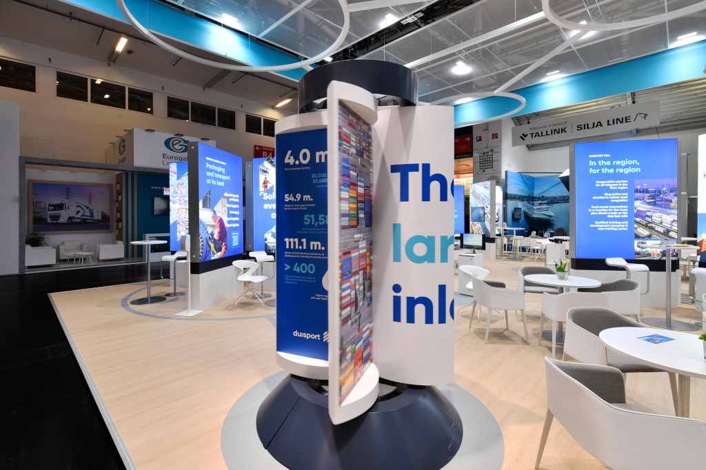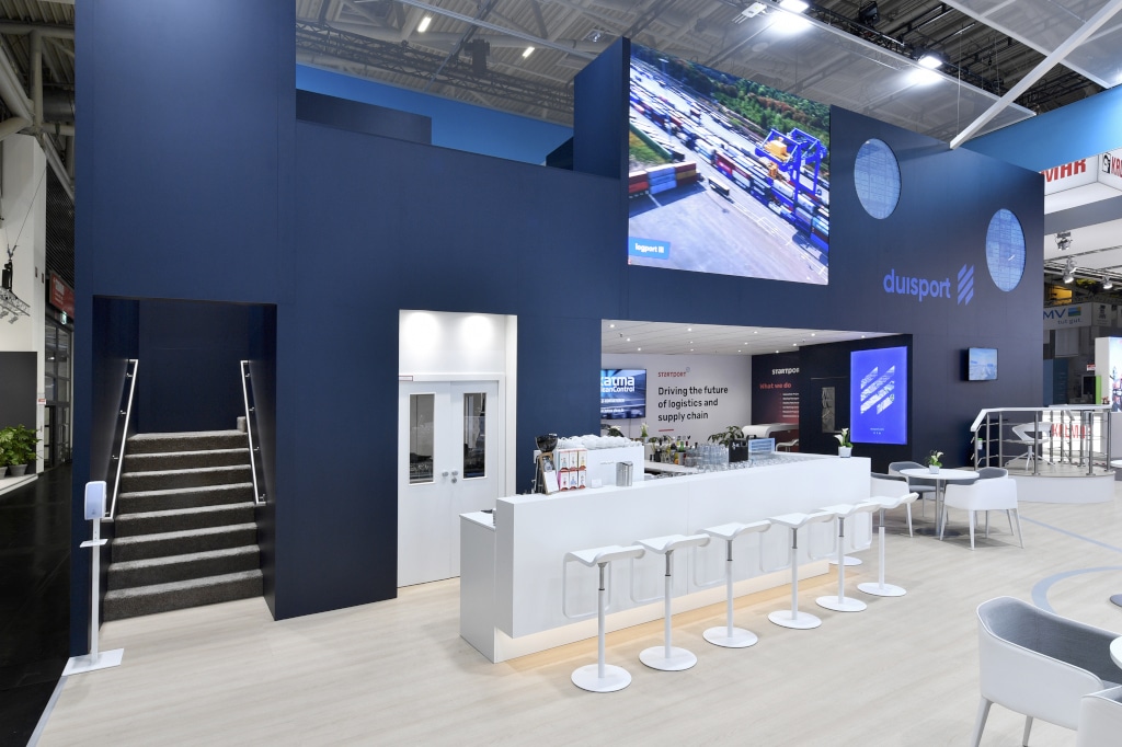 Ein gutes Beispiel für wirkungsvolle und nachhaltige Interaktion: Der größte Binnenhafen der Welt, die duisport Hafen AG, präsentierte sich mit neuem Logo und moderner Farbwelt auf ihrem 270 m2 großen, doppelgeschossigen Messestand zur Transport Logistic in München. Duisport zählt zu den bedeutendsten Logistikstandorten in Zentraleuropa und umfasst logistische Dienstleistungen, Verpackungslogistik, Schienengüterverkehr, Projektlogistik und Beratungsleistungen.