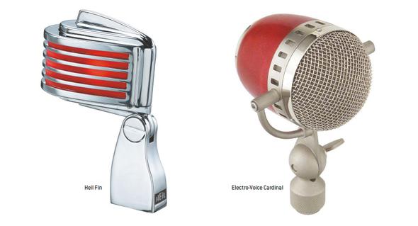 Ebenfalls aus den USA kommen dynamische Mikrofone der Firma Heil, die bei uns eher als Exoten gelten, aber durchaus ein Geheimtipp unter Tontechnikern sind. „Fin“, die Flosse, leuchtet gleich in mehreren Farbvarianten. Ein weiterer Anbieter mit modernen Retrolook-Mikrofonen ist die Firma Electro-Voice, die mittlerweile zu Bosch Communications gehört, mit dem Raven (dynamisch) und dem Cardinal (Kondensator), bei denen Holz als Gehäusewerkstoff dient.