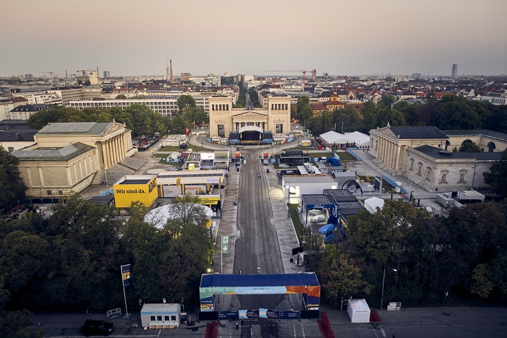 Aufbau des Open Space in der Münchner Innenstadt (Bild: IAA Mobility)