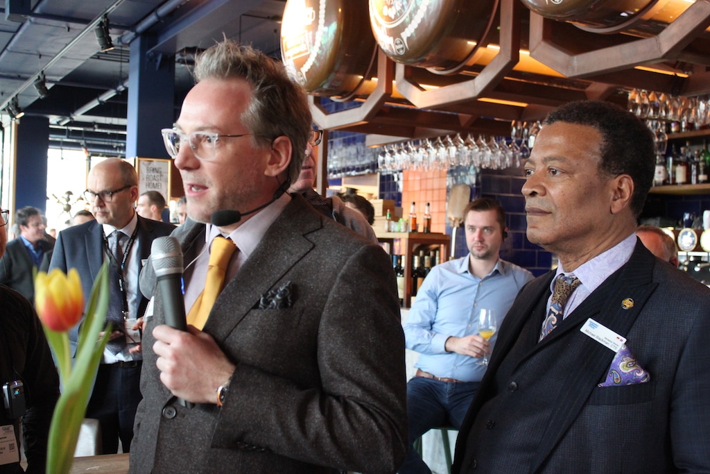 Tour Guide Matt Finke (l.) und Mike Blackman, Managing Director der ISE, bei der Begrüßung (Bild: Martina Gawenda)