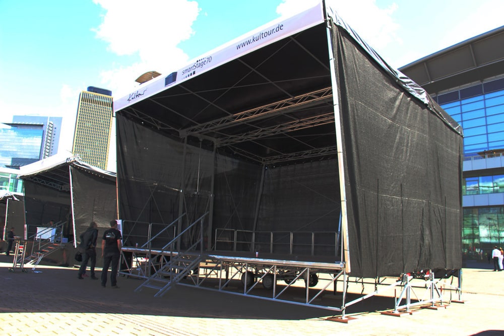 Premiere auf der Prolight + Sound 2016 hat die smartStage 70 der Kultour GmbH aus Münster. Sie ist die erste 3,5-Tonnen-Bühne, die mit dem Sprinter gezogen werden kann.