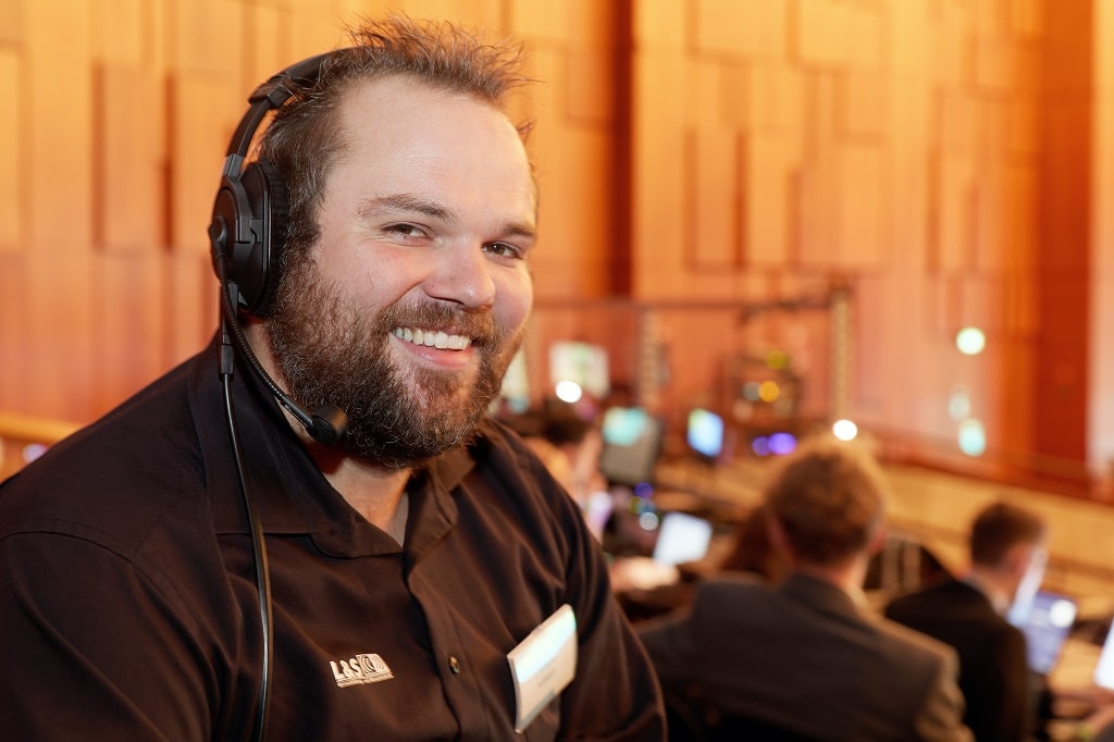Im Congress Center Rosengarten sprang sofort das an eine ausgewachsene TV-Produktion erinnernde Bühnenbild (Tom Böhle-Baßier) ins Auge, das nicht nur ansprechend aussieht, sondern auch skalierbar und somit während des fünfjährigen Vertragszeitraums an unterschiedliche Veranstaltungsorte anpassbar ist. „Ein hoher Wiedererkennungswert ist trotz unterschiedlicher Aufbaugrößen immer gegeben“, erklärte L&S-Projektleiter Frederik Völkert.