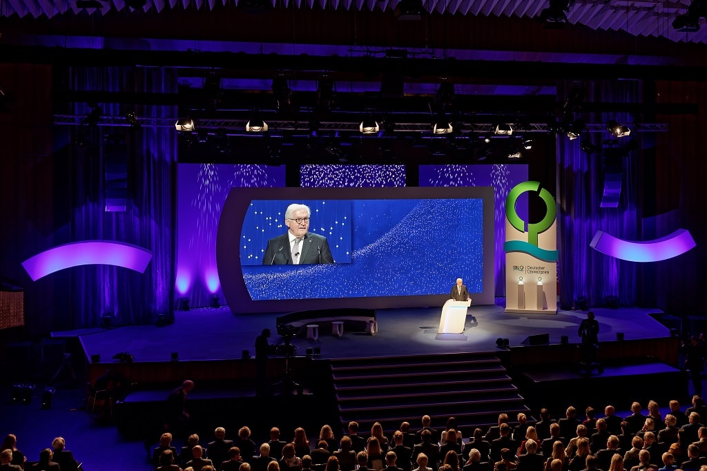 Der 27. Deutsche Umweltpreis wurde von Bundespräsident Frank-Walter Steinmeier an zwei sichtlich bewegte Gewinner überreicht, deren Verdienste nach Ansicht der Jury vorbildlich sind und zur Nachahmung anregen. Die Moderation übernahm Tagesschau-Sprecherin Judith Rakers; für musikalische Intermezzi sorgte „Die Schlagzeugmafia“.