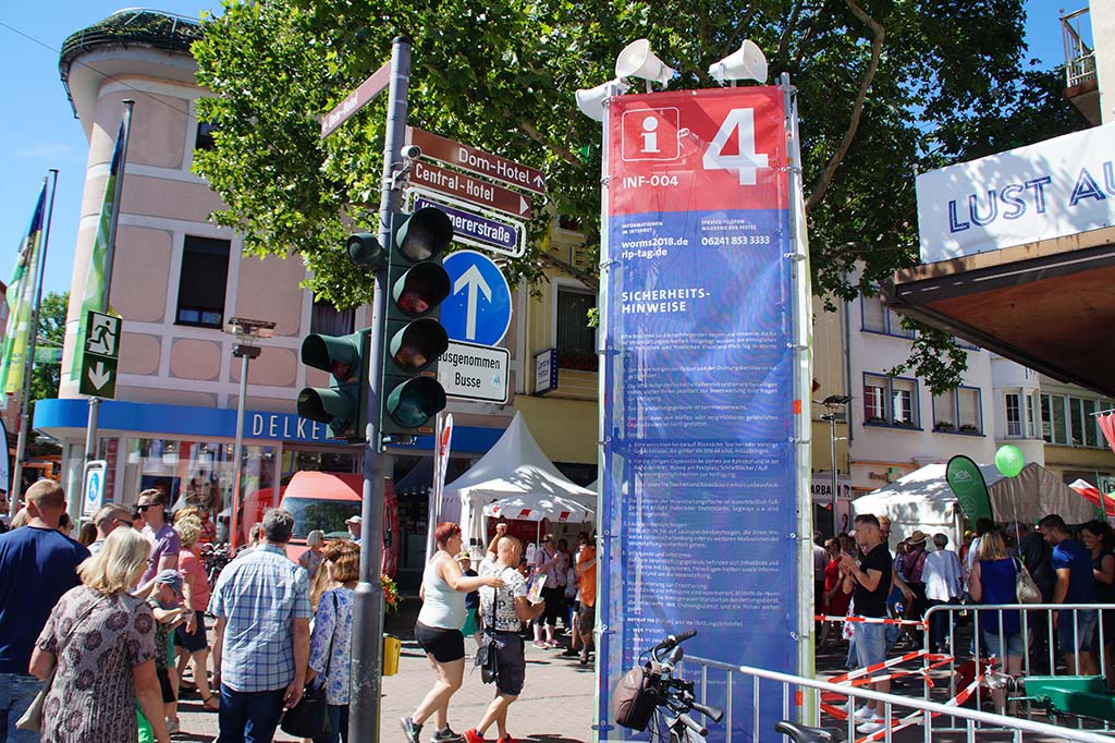 Öffentliche Veranstaltungen, wie der Rheinland-Pfalz-Tag vom 1. bis zum 3. Juni 2018 in Worms, sind Ausdruck von Lebensfreude und Sicherheit. Damit die Besucher und Gäste ein nachhaltiges und freudiges Event erleben konnten, musste das Zusammenspiel verschiedener privater und behördlicher Akteure beim Veranstaltungsschutz und bei der Veranstaltungssicherheit gut auf einander abgestimmt sein.