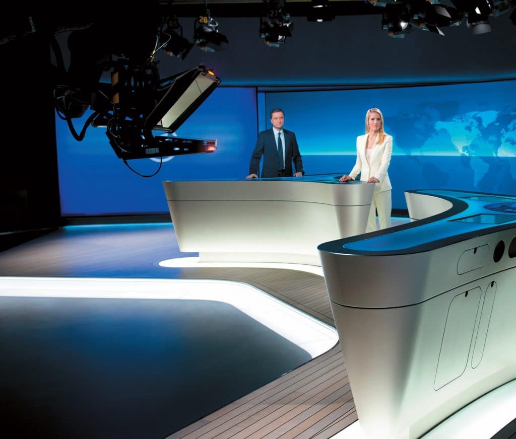 Das ARD-Studio ist mit einer XXL-Medienwand ausgestattet, an deren Gestaltung Veranstaltungstechnikspezialisten von Ambion maßgeblich Anteil hatten.