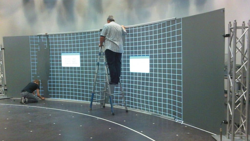 Im Rahmen der festinstallierten Medienwand konnten Einstell-, Justage- und Wartungsprozesse messtechisch begleitet und hinsichtlich der erforderlichen Zeit optimiert werden. Vergleichbare „Laborbedingungen“ wie bei einer Festinstallation sind auf einem Event nicht anzutreffen, da die technische Anlage nach der Nutzung sofort wieder abgebaut wird. „Um ein derart komplexes System überhaupt denken und dann auch noch einrichten zu können, ist es hilfreich, mit Fachleuten zusammenzuarbeiten, die im Eventkontext regelmäßig unter herausfordernden Bedingungen mit komplexesten Multiprojektionsanordnungen konfrontiert werden“, so Bommart. „Wichtig zu erwähnen ist, dass die ursprüngliche Idee zur Medienwand während der Planungsphase kontinuierlich weiterentwickelt wurde. Die unterschiedlichen Erfahrungshintergründe von TV- und Eventtechnikern sowie Systemintegratoren haben sich sehr gut ergänzt.“