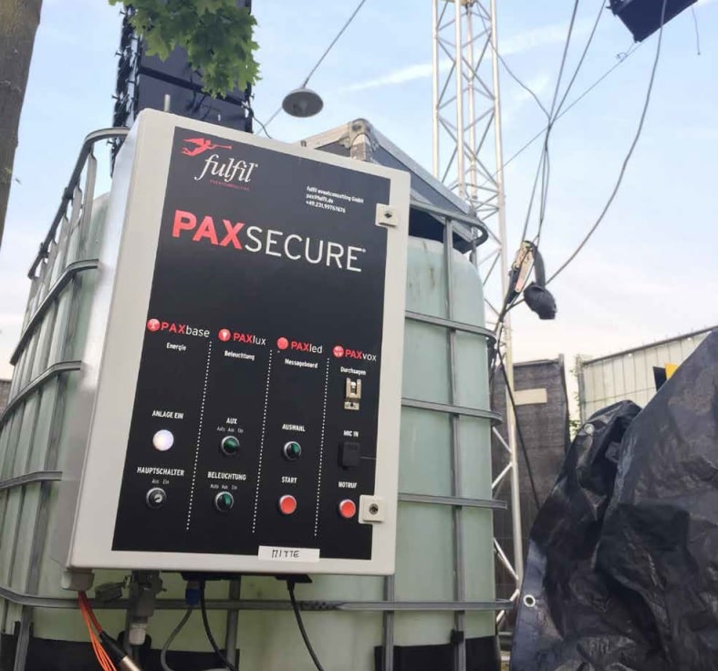 Mit PAXSECURE bietet die fulfil eventconsulting GmbH das erste modulare System zur Überwachung und Steuerung von Veranstaltungsszenarien. Ohne großen Aufwand ist es nun möglich, auf einem Gelände unterschiedliche Daten zu erfassen und Botschaften abzusetzen, um die Sicherheit und den Komfort für Besucher zu erhöhen. Dabei können ebenso Gäste gezählt, Wetterdaten erfasst, Emissionswerte gemessen, Videobilder übertragen sowie Durchsagen übermittelt werden. All diese Werte werden in einem System zusammengeführt, das sich auf Großveranstaltungen bereits bewährt hat.